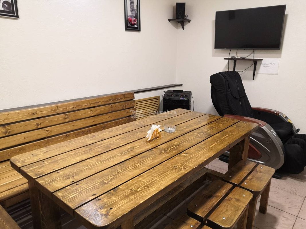 Не хочется в бассейн? Не беда! Вместо этого можно передохнуть в нашей комнате отдыха. Мы ставили своей целью создать здесь уютный, практичный интерьер из преимущественно натуральных, безопасных материалов, подобрать мебель, которая будет в равной степени удобной и приятной глазу. Надеемся, что вам понравится! Для поддержания атмосферы отдыха мы можем предложить вам караоке. Также у нас имеется бар.